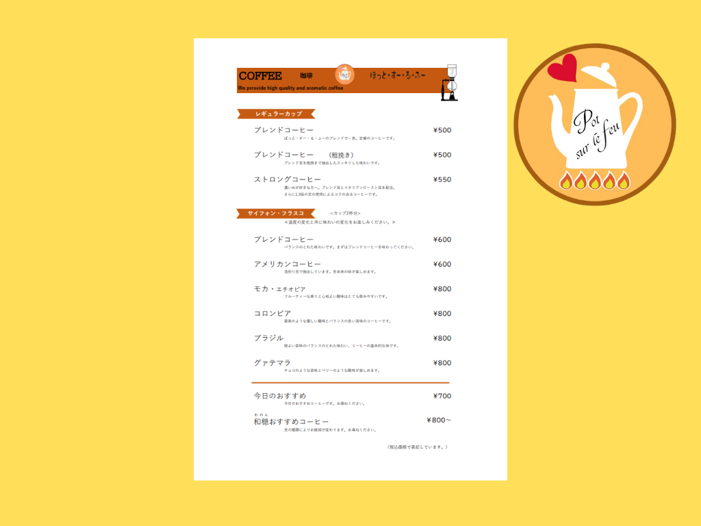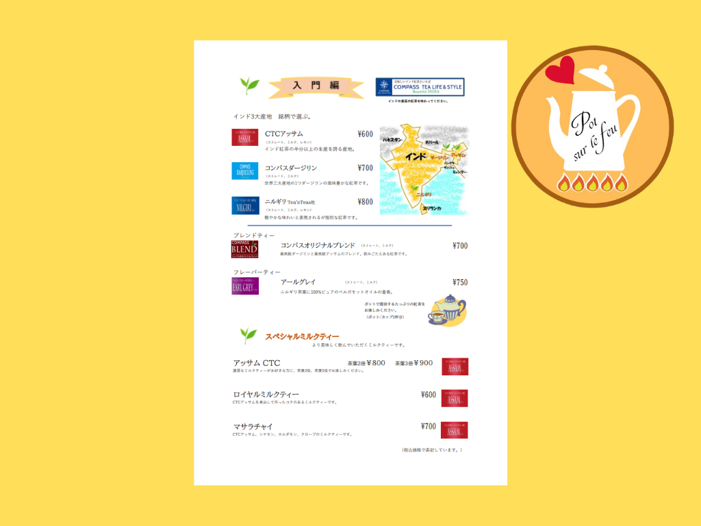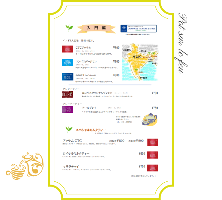 Nestled in the tranquil streets of Owariasahi, Pot Sur le feu is a delightful café that perfectly balances relaxation with a touch of culinary sophistication. Specializing in a remarkable selection of teas and coffees, this charming spot has been certified as an 'Oishii Tea Shop' by the city of Owariasahi, a testament to its commitment to excellence.